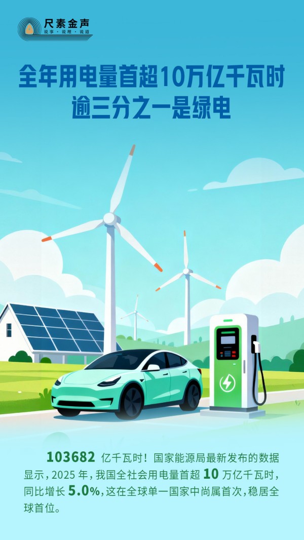 尺素金聲|全年用電量首超10萬億千瓦時,逾三分之一是綠電