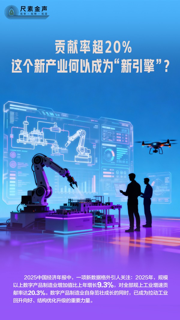 2025中國經(jīng)濟年報中,一項新數(shù)據(jù)格外引人關(guān)注:2025年,規(guī)模以上數(shù)字產(chǎn)品制造業(yè)增加值比上年增長9.3%,對全部規(guī)上工業(yè)增速貢獻(xiàn)率達(dá)20.3%。數(shù)字產(chǎn)品制造業(yè)自身茁壯成長的同時,已成為拉動工業(yè)回升向好、結(jié)構(gòu)優(yōu)化升級的重要力量。