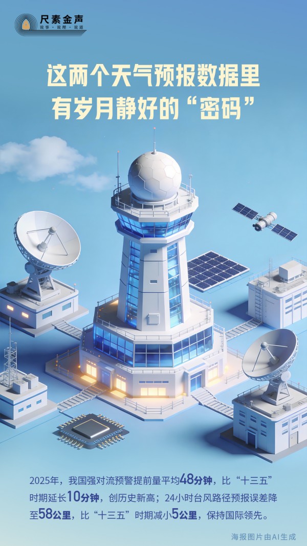 最新的2026年全國氣象工作會議報告顯示,2025年,我國強對流預警提前量平均48分鐘,比“十三五”時期延長10分鐘,創(chuàng)歷史新高;24小時臺風路徑預報誤差降至58公里,比“十三五”時期減小5公里,保持國際領先。